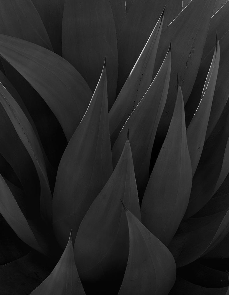 La visión que Chauche nos presenta de los magueyes nos instala en un mundo aparte. Un mundo que viene prestado de la vida y fertilidad vegetal de esta especie y que se desliza hacia un ámbito transfigurado, donde las superficies, las hojas, las afiladas puntas, las espinas se disfrazan de grises, de blancos, de negros y nos aparecen trastocadas.